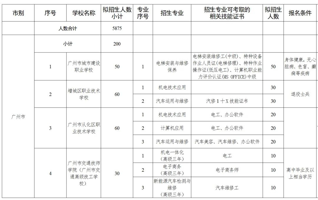 《通知》指出,2021年,广东省54所技工院校、中等职业学校计划承担2019年和2020年退役